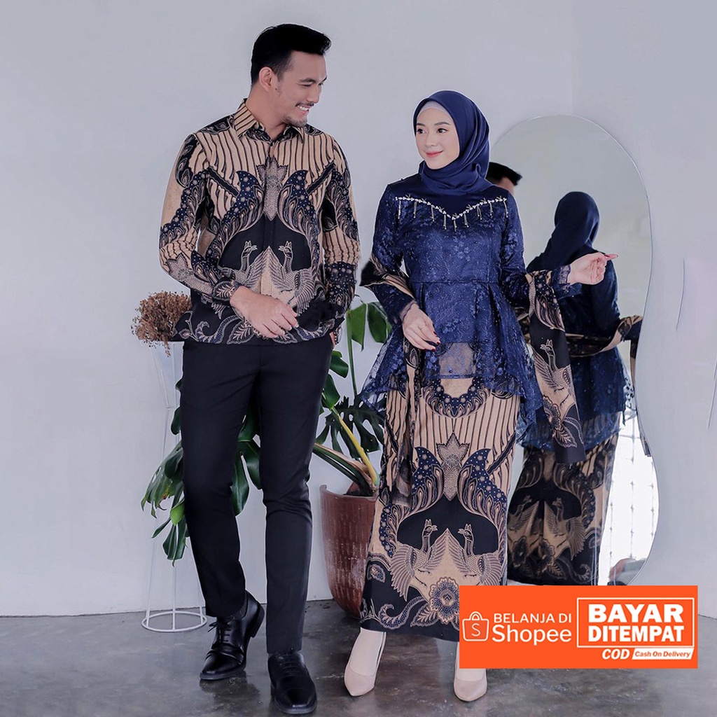 Produk WOU BATIK - Kebaya Batik Couple Tamara Sarimbit Brokat Tille Mutiara Rok Span Pinggang Karet Allsize Kemeja Pria Lengan Panjang Size M,L,XL yang perlu Anda lirik karena menarik, Produk itu adalah....