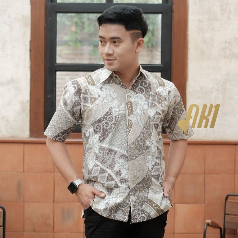 BSWART Batik HRB026 kenongo Hem Pendek anjani biru Pekalongan M L XL Batik Pria MURAH Modern Grosir