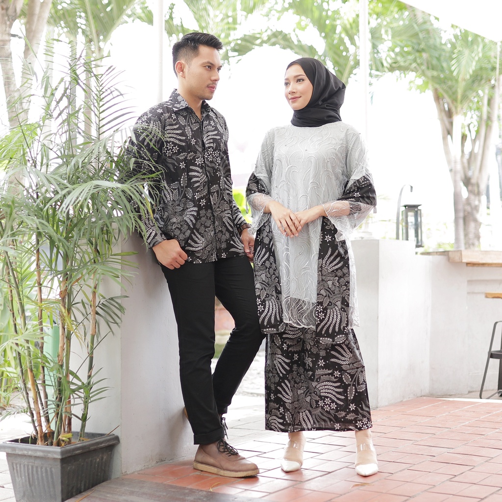 WOU BATIK PREMIUM - Kebaya Batik Couple Nabila Katun Prima Atasan Brokat Rok Span Pinggang Katun Allsize